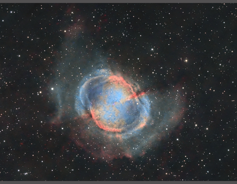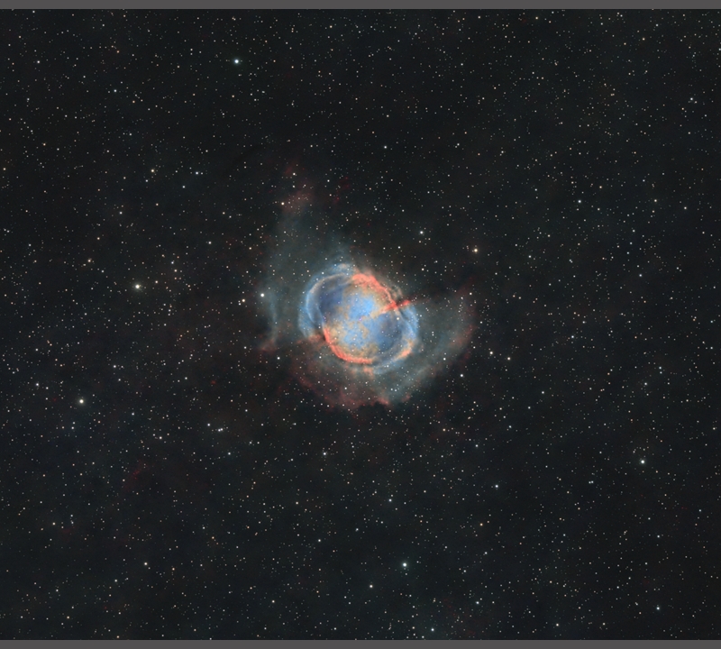 Askar ACL200 Ha+OIII+SII als Hubble Palette Altair Hypercam 26C 27-01-2024 bis 29-01-2024 47 x 420 s L-eNhance-Filter (Ha + OIII) 38 x 420 s ASKAR C2 (SII+ OIII) 90 x 60 s Orion SkyGlow (RGB) ![]() Detail: