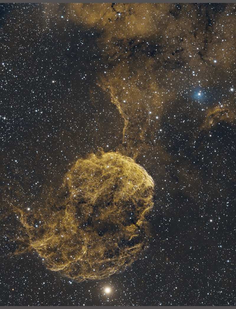 Askar ACL200 Ha+OIII+SII als Hubble Palette Altair Hypercam 26C 27-01-2024 bis 29-01-2024 47 x 420 s L-eNhance-Filter (Ha + OIII) 38 x 420 s ASKAR C2 (SII+ OIII) 90 x 60 s Orion SkyGlow (RGB) ![]() Detail: